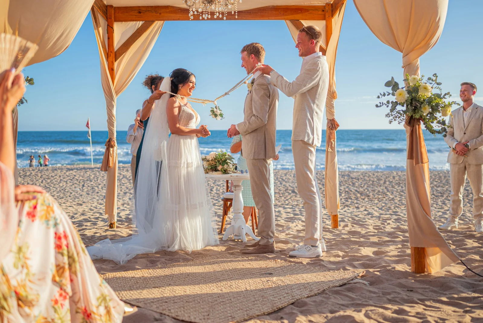 Natural sand backdrops, open landscapes, and warm evening light create a private and peaceful wedding setting.