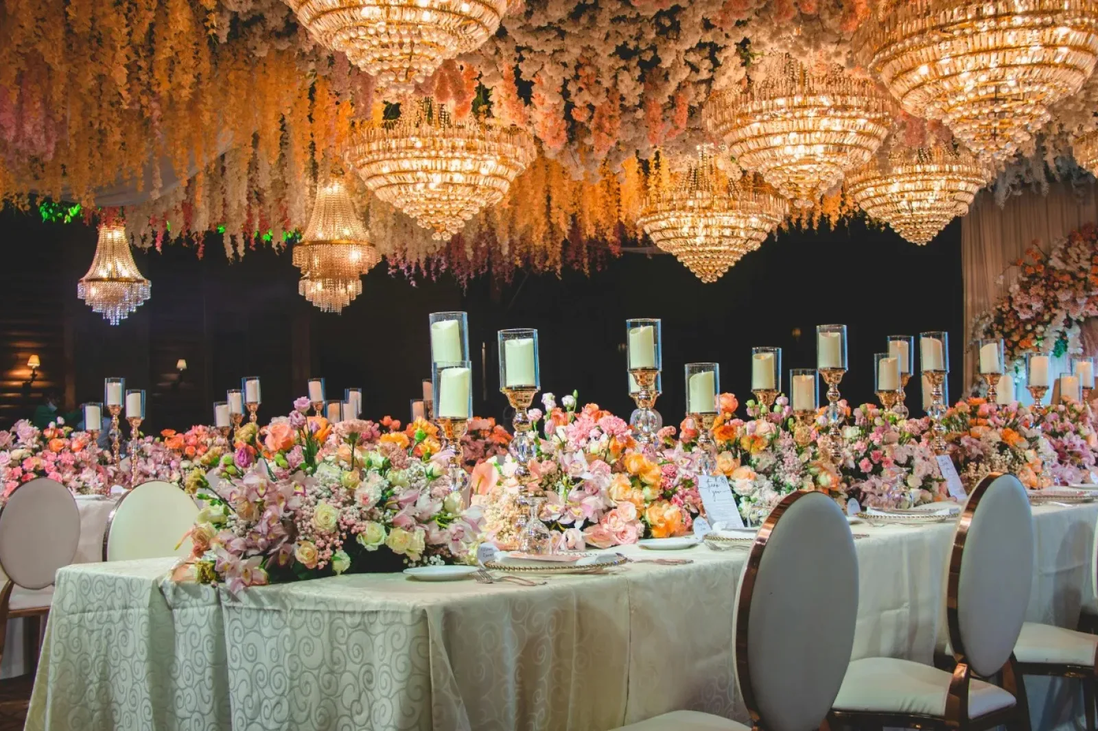 Stage design, Table styling, Floral arrangements, Entrance décor.
